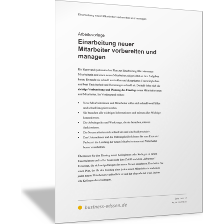 Immer wieder das gleiche Problem: Fängt eine neue Mitarbeiterin oder ein neuer Mitarbeiter an, weiß keiner genau, was nun zu tun ist. Damit die neue Kollegin und der neue Kollege sorgfältig und schnell eingearbeitet werden, brauchen Sie einen Einarbeitungsplan. Den erstellen Sie mit dieser Vorlage und Checkliste. Hier ist erläutert, welche Aspekte relevant sind und welche Planungsschritte Sie beachten sollten.