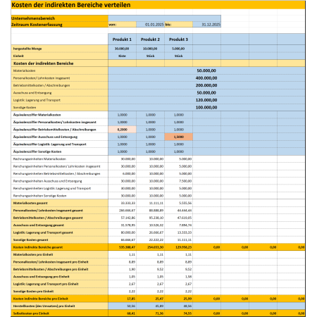 Für die Kuppelproduktion und die Kalkulation von Handelsware sind zwei weitere Excel-Vorlagen in diesem Dokumentenpaket enthalten.