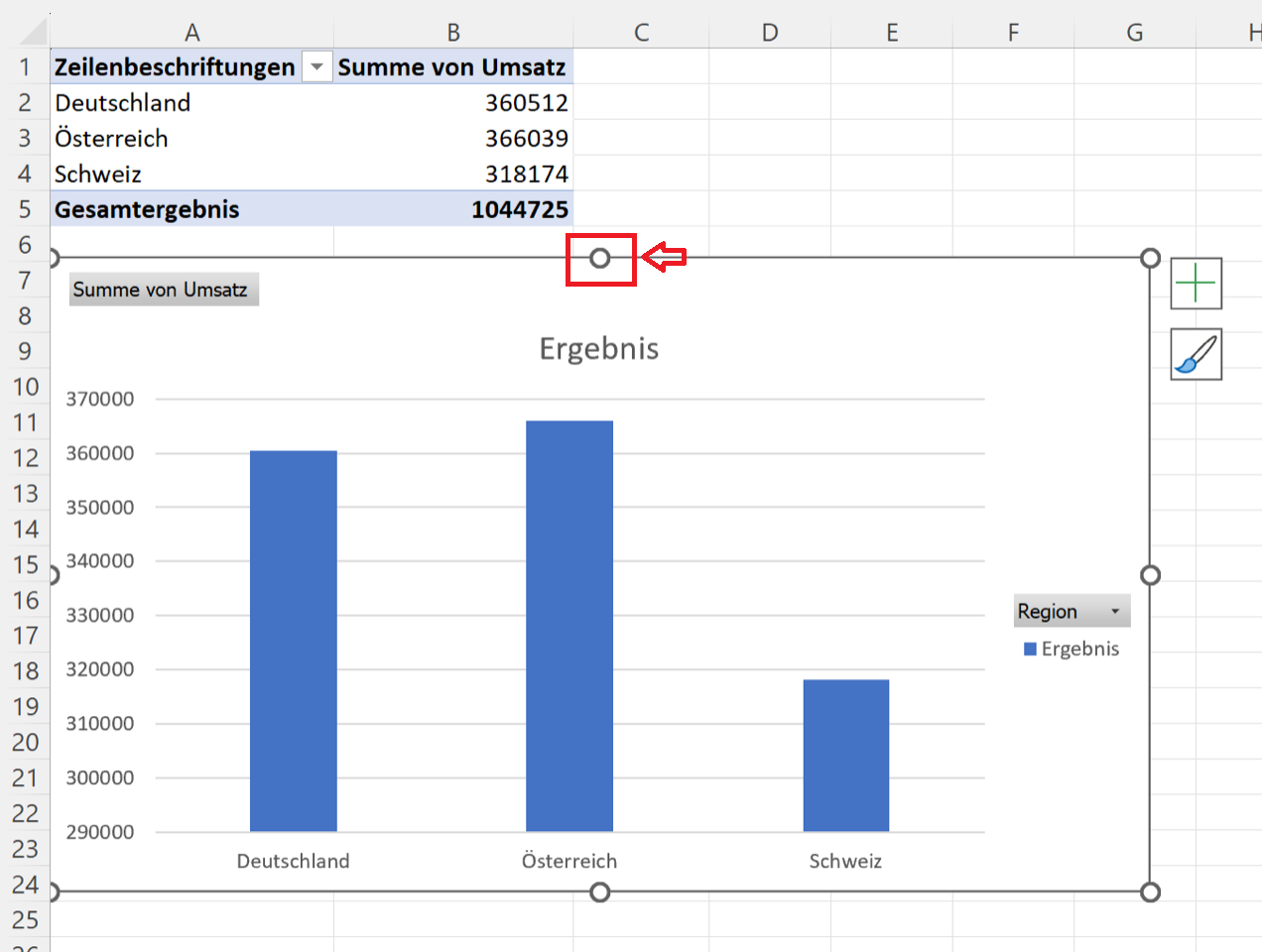 Sie erkennen die Aktivierung an den sechs Punkten auf dem Rand des Pivot-Charts.