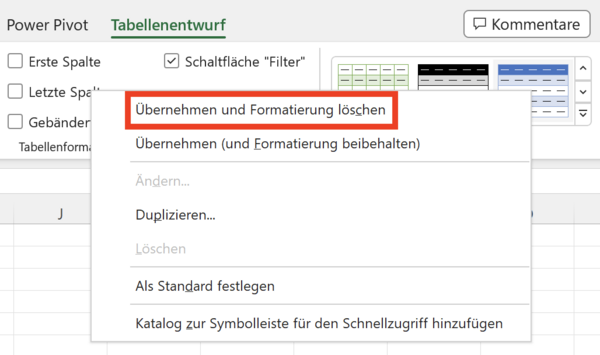 Excel-TippManuelle Formatierungen in intelligenten Tabellen entfernen