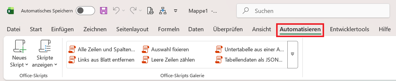 Die Funktion befindet sich in der Registerkarte Automatisieren.