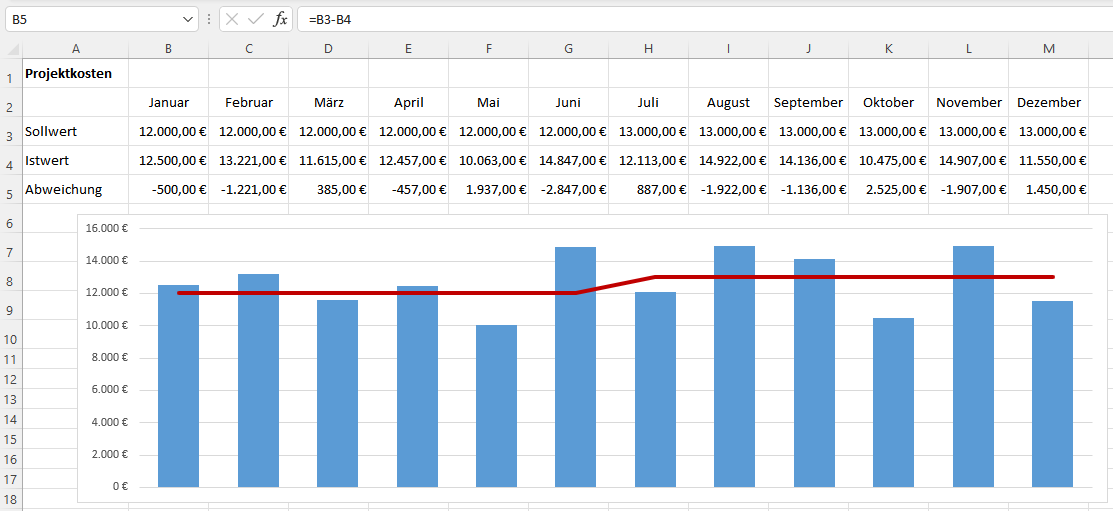 Statischer Soll-Ist-Vergleich mit Excel