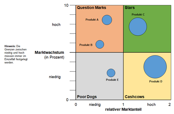 Die BCG-Matrix kann dann wie in der folgenden Abbildung als Portfolio-Diagramm dargestellt werden.