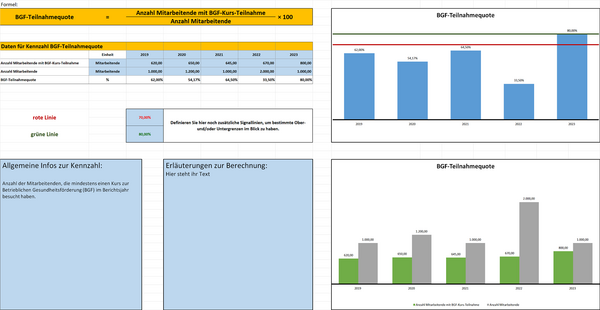 Nutzen Sie die folgende Vorlage als ein Muster für Ihr Kennzahlen-Dashboard zum betrieblichen Gesundheitsmanagement.