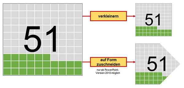Es wird das Abbild des Diagramms eingebunden, das Sie verändern, vergrößern oder verkleinern können – je nachdem, was Ihr Zielprogramm anbietet (siehe die Beispiele in der folgenden Abbildung).