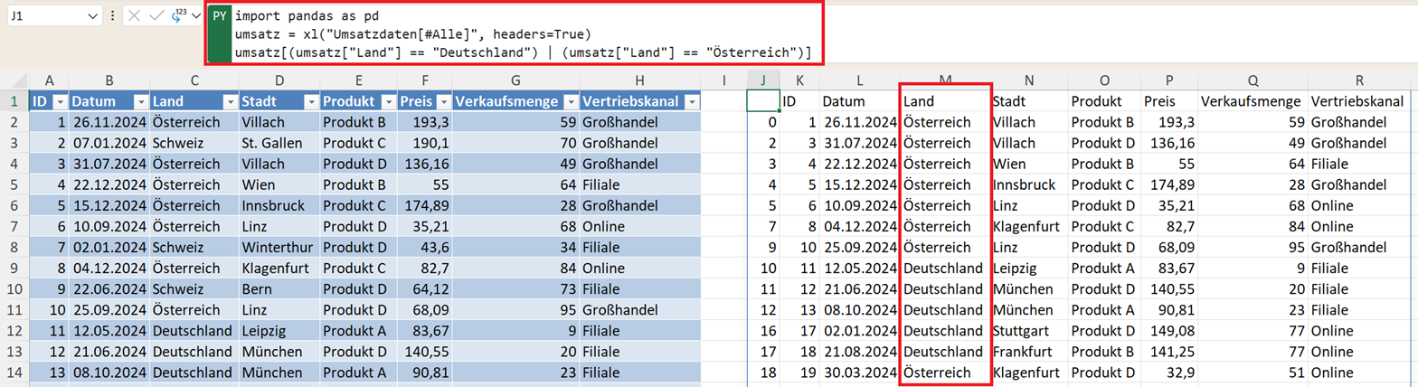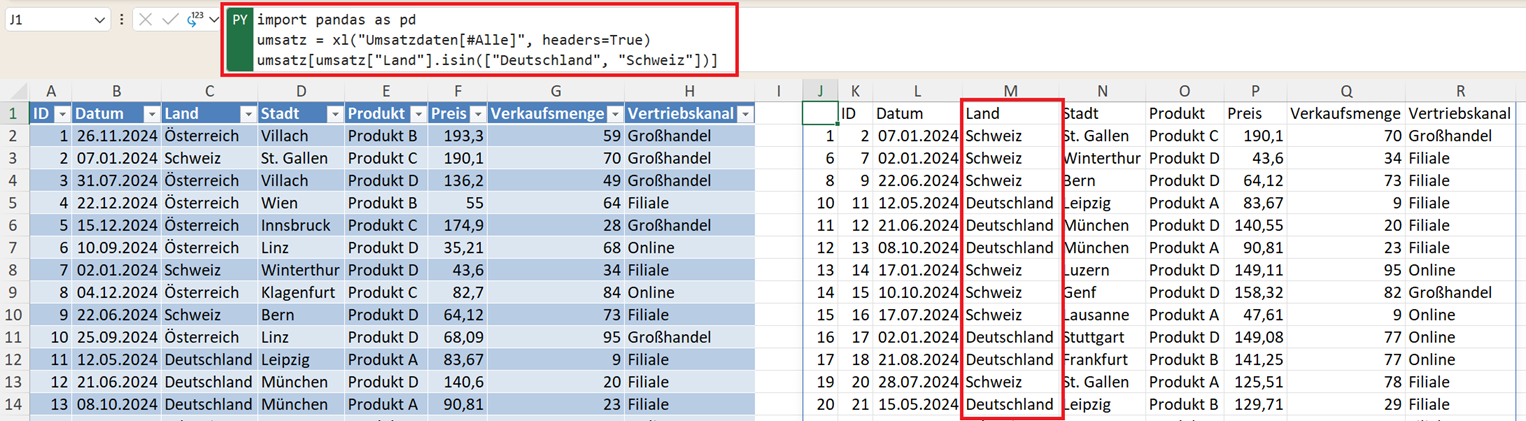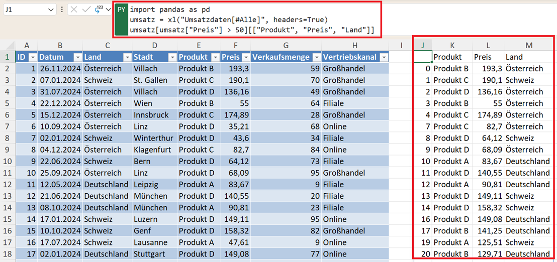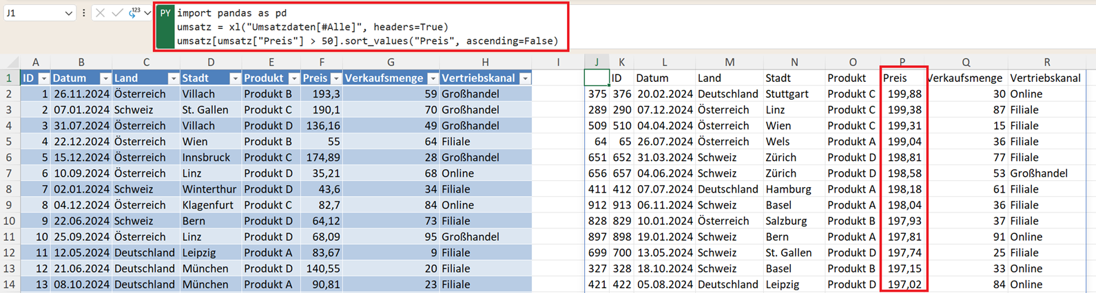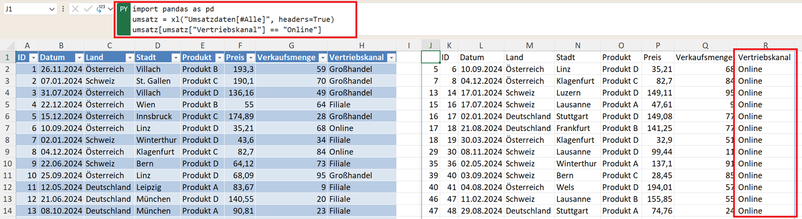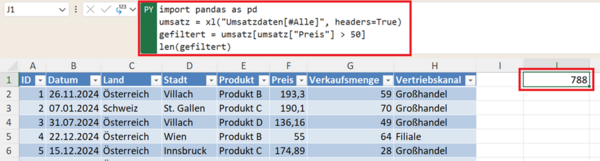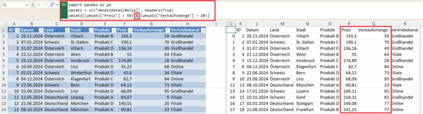 Python in Excel für die DatenanalyseDaten filtern mit Pandas – Bedingungen in Python in Excel