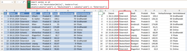 In Excel würden Sie dafür typischerweise Filter setzen oder Pivot-Tabellen verwenden. Mit Python in Excel geht das deutlich strukturierter – und vor allem reproduzierbar.