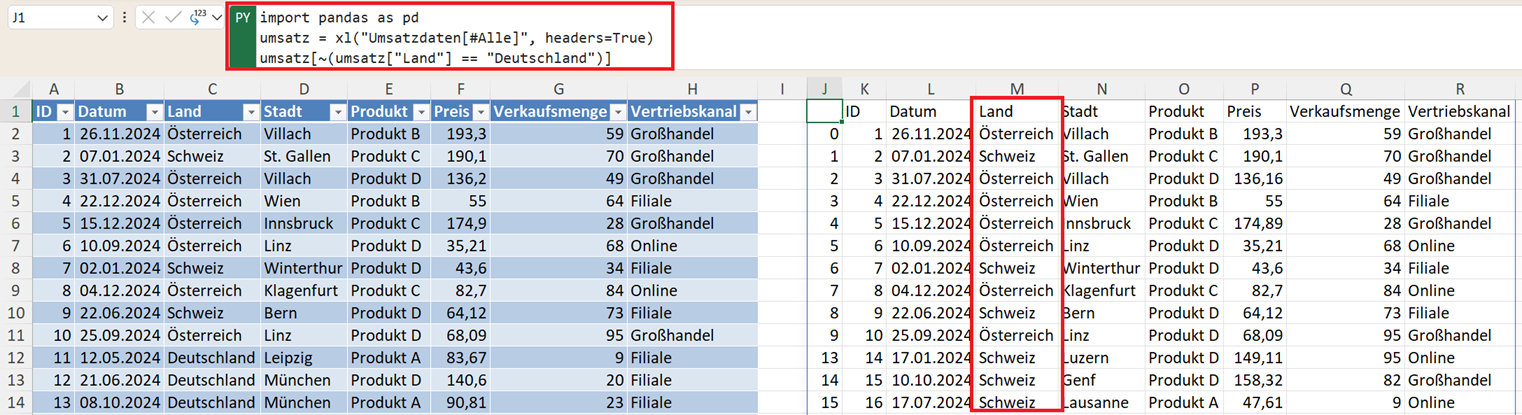gefiltert = umsatz[~(umsatz["Land"] == "Deutschland")].reset_index(drop=True)