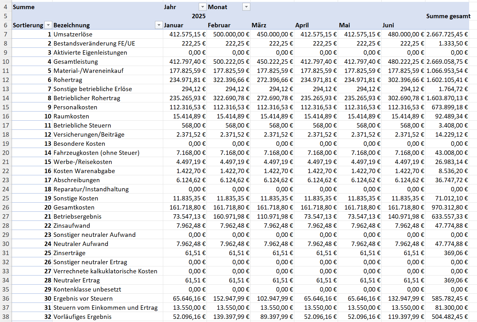 Viele Unternehmen sind mit ihrer Buchhaltung an Datev angebunden. Alle Buchungsvorgänge werden dort von der Buchhaltung oder Steuerberatung erfasst. Am Ende eines Monats können wichtige Kennzahlen zum Unternehmenserfolg und zur Liquidität ermittelt und ausgewertet werden.