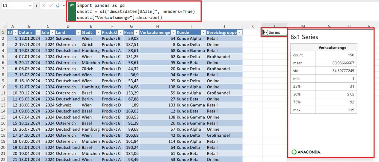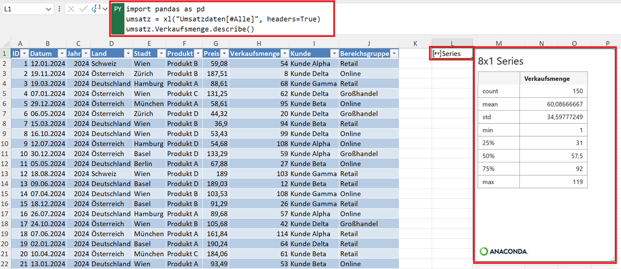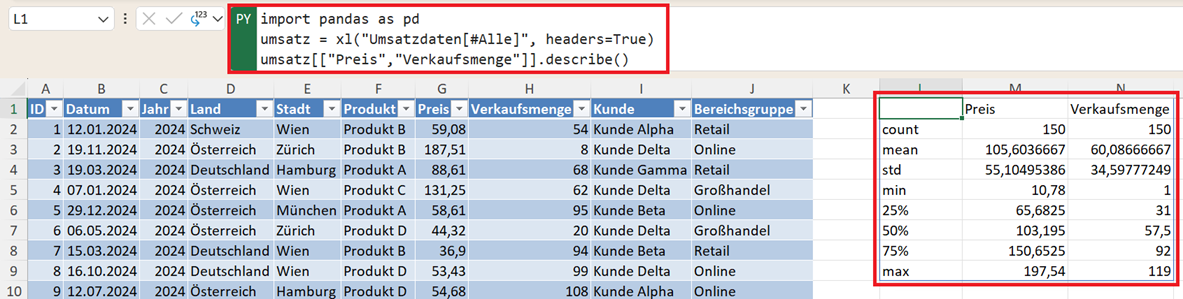 Python in Excel für die DatenanalyseHilfreiche Funktionen in Python für die explorative Beschreibung eines Datensatzes