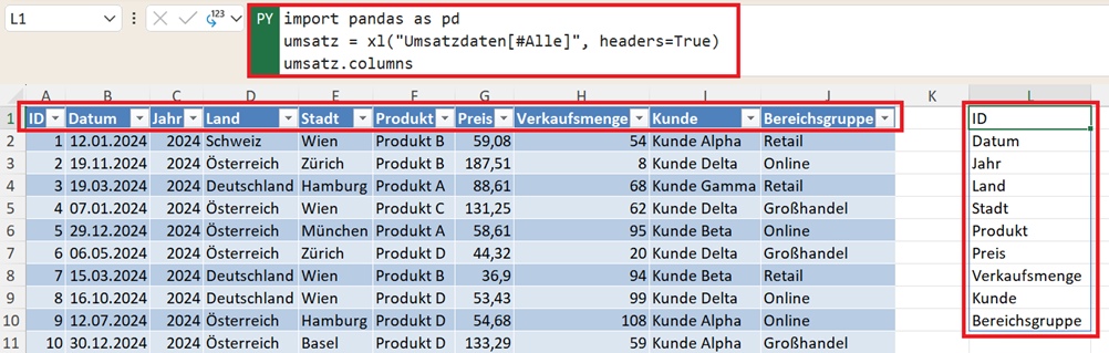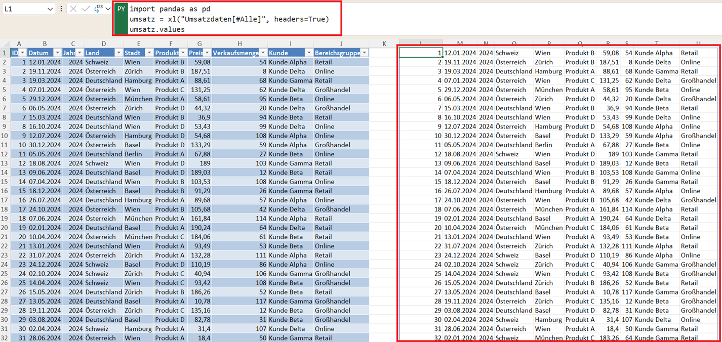 umsatz = xl("Umsatzdaten[#Alle]", headers=True)