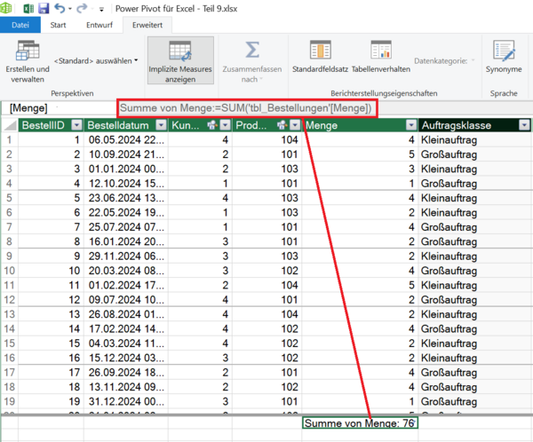 Das bedeutet: Auch wenn Sie selbst noch kein Measure geschrieben haben, nutzt Excel im Hintergrund bereits DAX-Formeln, um das gewünschte Ergebnis zu berechnen.