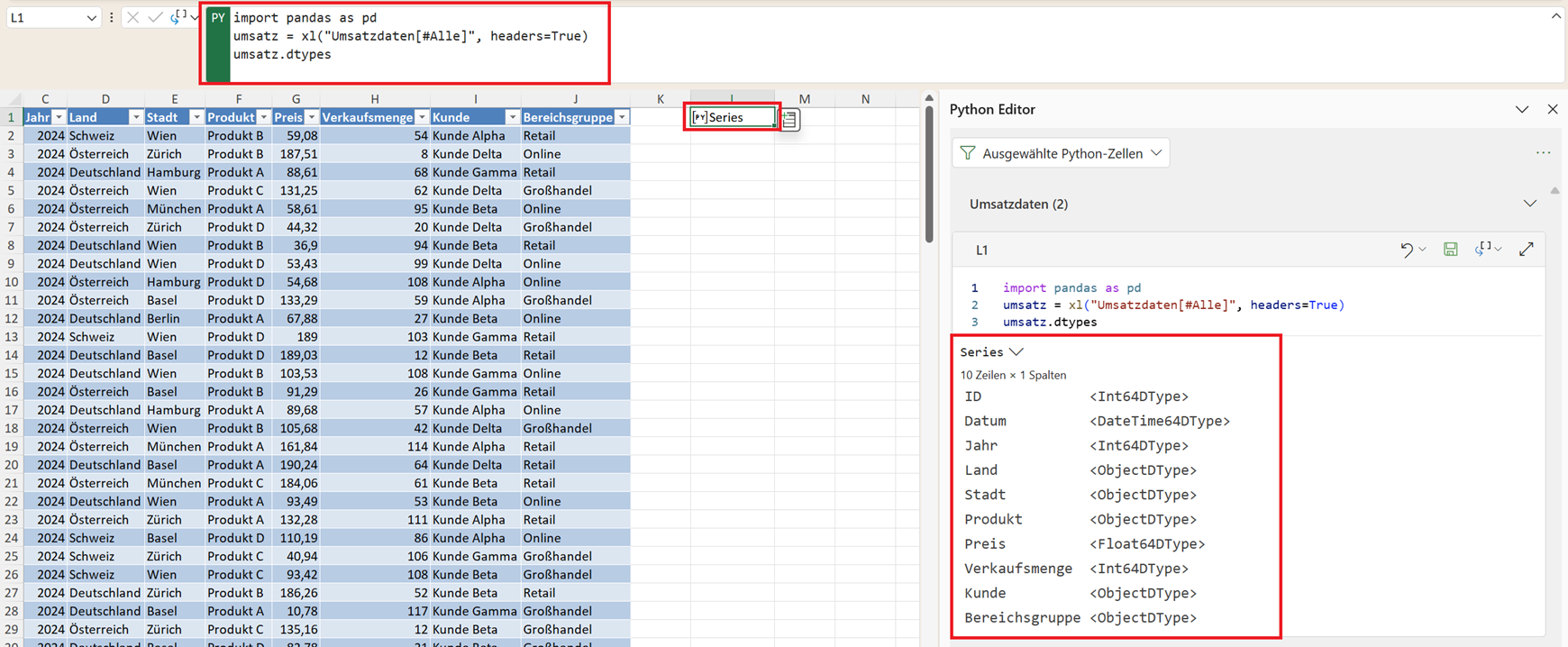 umsatz = xl("Umsatzdaten[#Alle]", headers=True)