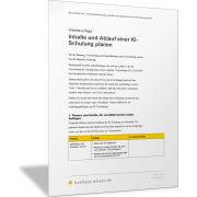 Welche Inhalte dies im Einzelnen sind, wird vom Arbeitsplatz, den Aufgaben und den eingesetzten KI-Tools abhängen. Übergreifend sind diese Inhalte sinnvoll: