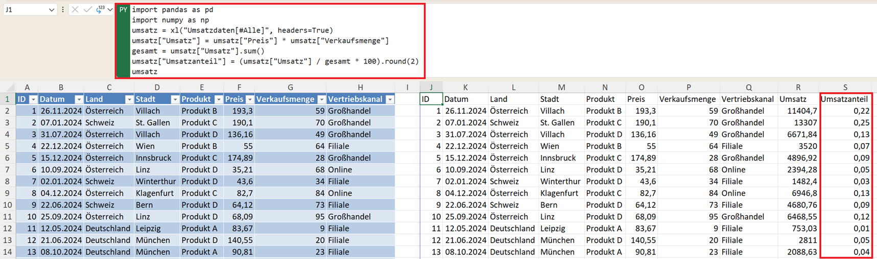 umsatz = xl("Umsatzdaten[#Alle]", headers=True)