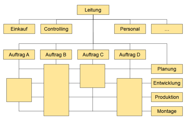 In der Praxis haben sich für die Organisation unterschiedliche, allgemeine Grundstrukturen entwickelt, die sich dann in entsprechenden Organigrammen wiederfinden. Oft werden unterschieden (siehe folgende Abbildung):