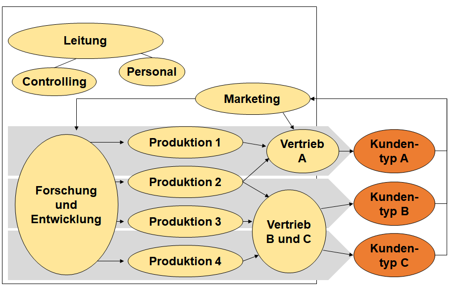• Verantwortlichkeiten zwischen Abteilungen abgrenzen, um Doppelarbeit oder Konkurrenz zwischen den Abteilungen zu vermeiden