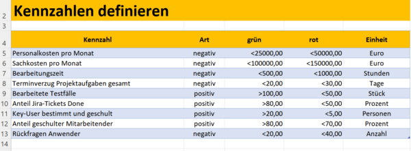 Kennzahlen definieren