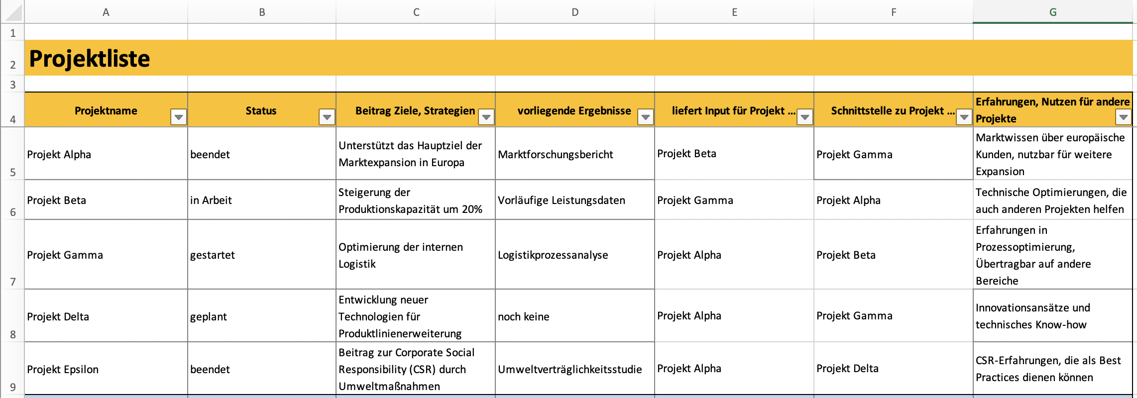 Mit Excel Projekt-Synergien und Projekt-Schnittstellen erfassen