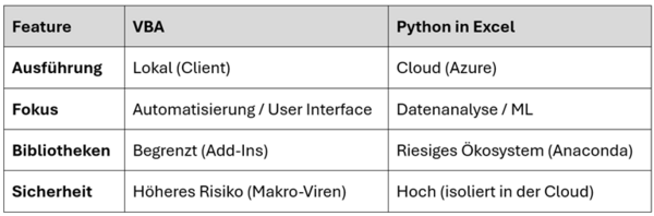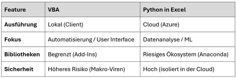 Im Gegensatz zu VBA (lokal) wird Python-Code in einer isolierten Hyper-V-Container-Umgebung in der Microsoft-Azure-Cloud ausgeführt.