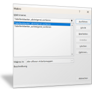 - Wählen Sie das gewünschte Makro aus. Je nachdem, ob Sie die Tabellenblätter auf- oder absteigend sortieren wollen.