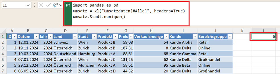Python in Excel für die DatenanalyseSpalten gezielt analysieren und Kennzahlen ermitteln