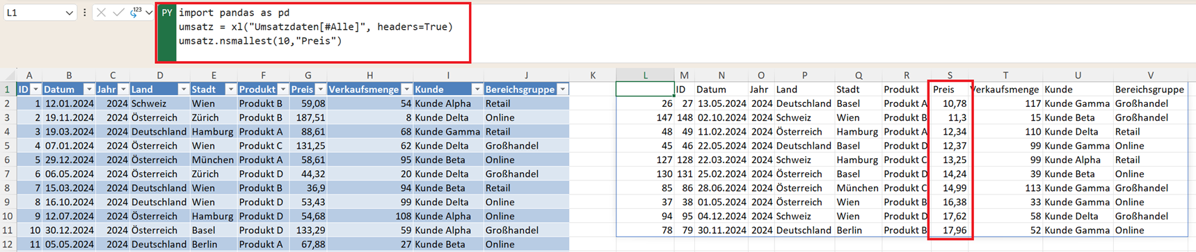 umsatz = xl("Umsatzdaten[#Alle]", headers=True)