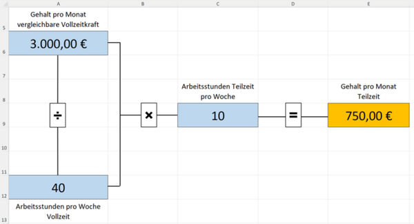 Mit dem folgenden Excel-Tool ermitteln Sie basierend auf den Werten zu einer vergleichbaren Vollzeitstelle: