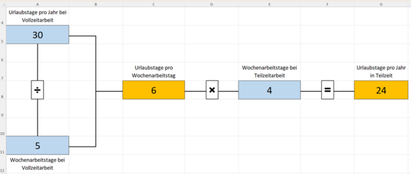 - In Zelle G7 lesen Sie ab, wie viele Urlaubstage im Jahr Ihrer Teilzeitkraft zustehen.