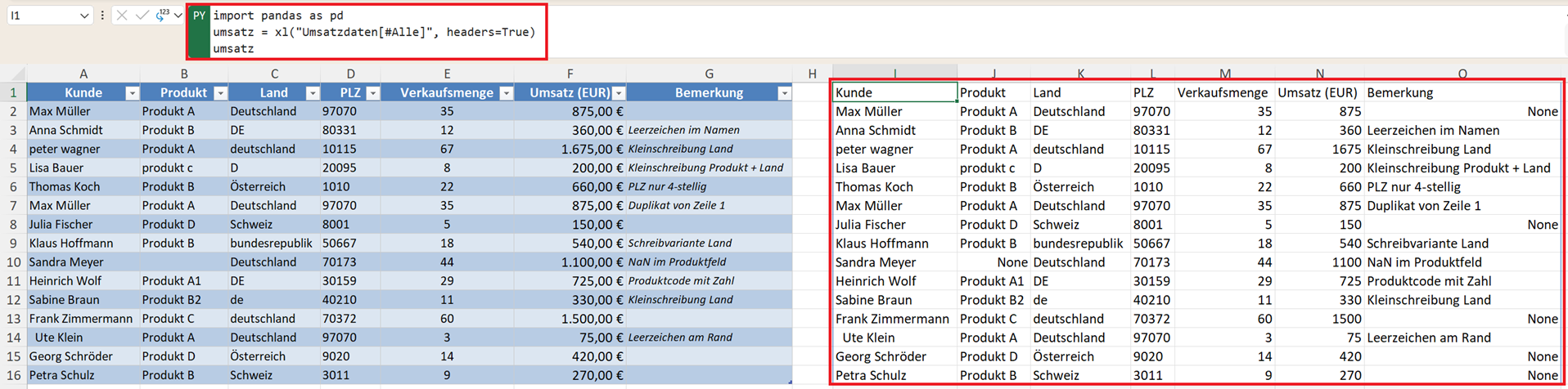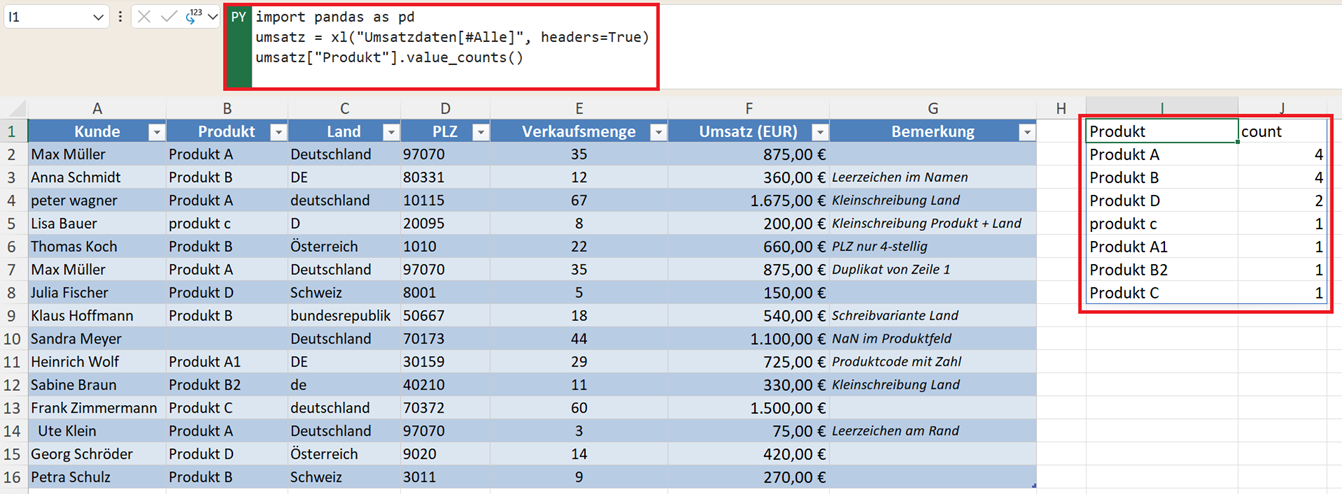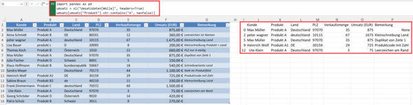 Python in Excel für die DatenanalyseTextdaten verarbeiten mit Pandas in Python in Excel