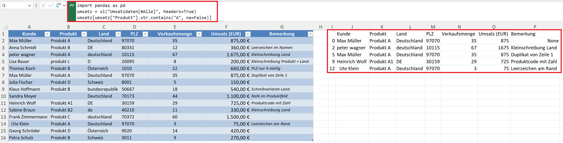 umsatz[umsatz["Produkt"].str.contains("A", na=False)]
