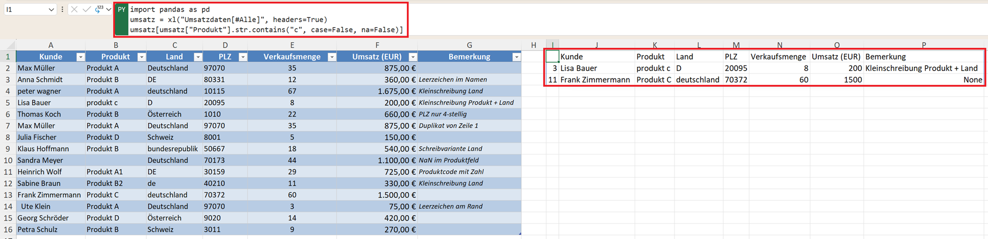 umsatz[umsatz["Produkt"].str.contains("c", case=False, na=False)]