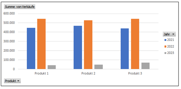 Daraus wird mit den Vorlagen ein Verkaufs- oder Umsatzdiagramm automatisch erstellt. Sie können dabei selbst einstellen, welche Art von Kriterien Sie erfassen wollen und welche Ausprägungen es dafür geben kann. Die Diagramme werden mithilfe von Pivot-Charts in Excel erstellt.