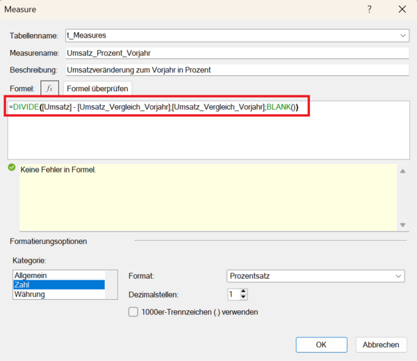 Umsatz_Prozent_Vorjahr:= DIVIDE([Umsatz] - [Umsatz Vorjahr]; [Umsatz Vorjahr]); BLANK())