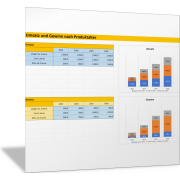Die Excel-Vorlagen sind für unterschiedliche Arten zur Visualisierung erstellt. In einigen Excel-Vorlagen können Sie den Absatz Ihrer Produkte mit dem Absatz von Wettbewerbern vergleichen. So werden Marktanteile und deren Veränderung im Produktlebenszyklus sichtbar.