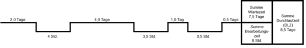 Die Timeline im Wertstrom-Diagramm wird in der folgenden Weise dargestellt: