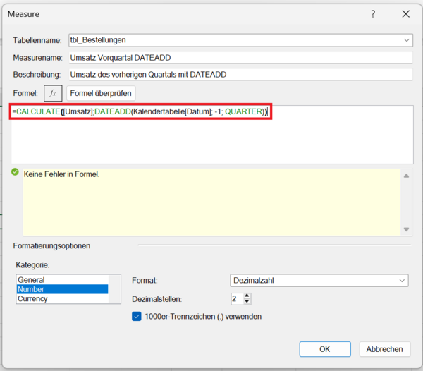 In der Praxis gilt: Wenn Sie eine vollständige Kalendertabelle in Ihrem Datenmodell haben, sollten Sie DATEADD als bevorzugte Funktion einsetzen – sie ist genauer, flexibler und besser für dynamische Reports geeignet.