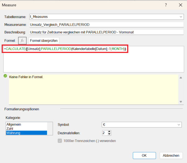 Umsatz_Vergleich-Jahr_PARALLELPERIOD:= CALCULATE([Umsatz]; PARALLELPERIOD(Kalendertabelle[Datum]; -1; YEAR))