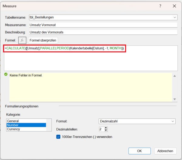 - Einfache Kombination: In Verbindung mit CALCULATE, DIVIDE oder weiteren Measures lassen sich Abweichungen und prozentuale Veränderungen berechnen.