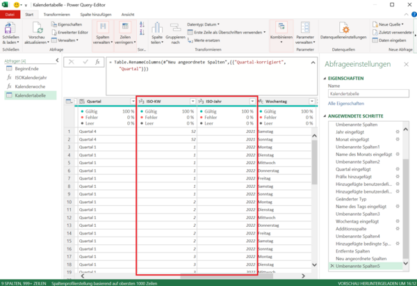 Die Lösung: Korrektur der ISO-Kalenderwoche in Power Query