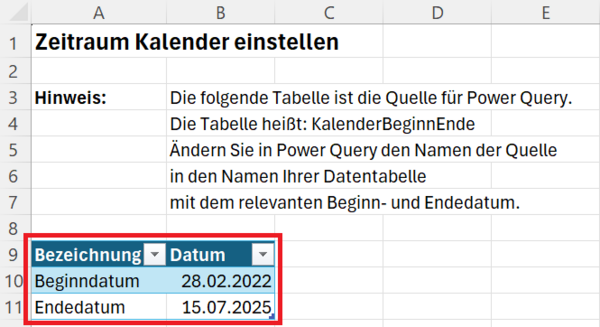 Hinweis: Lesen Sie in dieser Anleitung, wie Sie eine Kalendertabelle in Power Query erstellen.