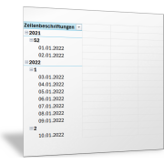 - Sie sollten deshalb für die Darstellung nach Kalenderwoche auf die zusätzliche Ausgabe von Quartal und Monat verzichten.