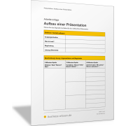 Orientieren Sie sich bei der Ausarbeitung Ihres Vortrags am Schema in den folgenden Vorlagen. Diese Schemen können Sie als allgemeine Gliederung und Struktur für Ihre Präsentation, aber auch für Zusammenfassungen oder für das Handout und die Dokumentation nutzen.