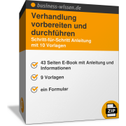 Bereiten Sie sich mit dieser Vorlage auf die nächste Verhandlung vor. Dazu sind in der Vorlage die Kernfragen benannt und erläutert, die Sie vorab auf unterschiedlichen Ebenen (Aspekten) bearbeiten und klären sollten. Bedenken Sie im Vorfeld, welche Ziele die Verhandlungspartner jeweils haben, wie Sie am besten vorgehen, wie Sie den Verlauf steuern, wie sich die Verhandlungspartner (vermutlich) verhalten und welchen Nutzen sie erwarten. Mit den Aspekten aus dieser Vorlage haben Sie eine gute Grundlage für Ihre Verhandlung.
