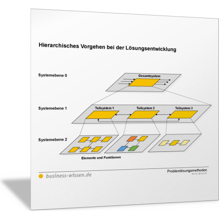 Die Zerlegung von komplexen Aufgaben und Problemen in Teilaufgaben und Teilprobleme kann mehrfach erfolgen – bis Lösungselemente entstehen. Diese Lösungselemente werden dann wieder zur Gesamtlösung zusammengesetzt.