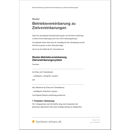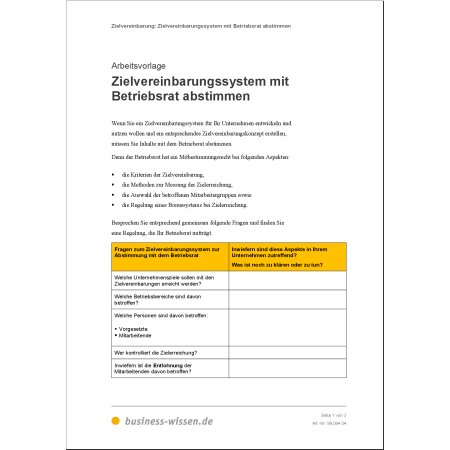 - eine Vorlage zur Entwicklung eines Zielvereinbarungssystems
