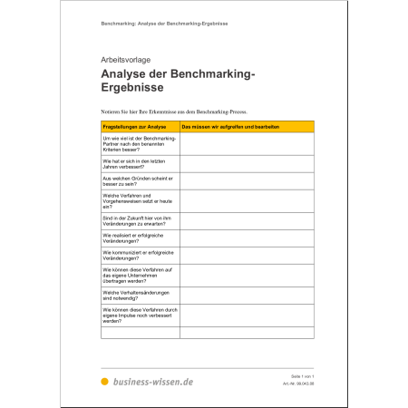 - mit Vorlagen für den Vergleich von Kennzahlen mit Benchmarking-Partnern