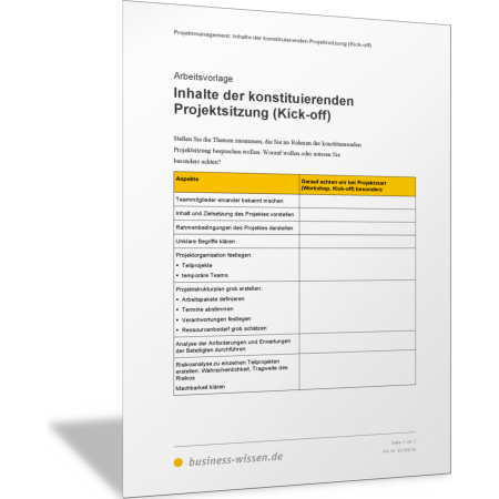 Inhalte der konstituierenden Projektsitzung – Projekt-Kick-off