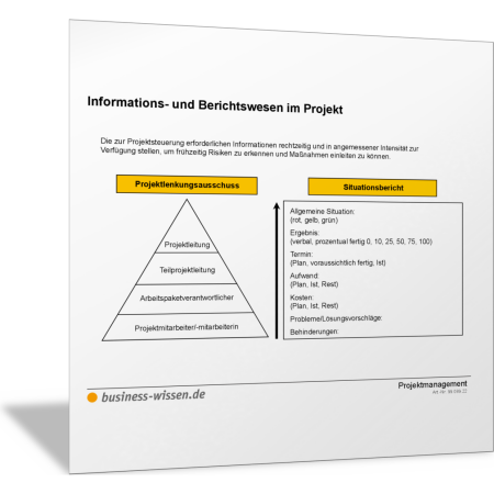 Nutzen Sie eine Form der Berichterstattung und des Reportings in Ihrem Projekt. Dabei hängt die Wahl der Berichtsform unter anderem davon ab, welche Zielgruppe, Stakeholder oder Personenkreise Sie erreichen wollen. Wichtig ist, dass alle notwendigen Informationen zur Verfügung stehen und das Berichtswesen trotzdem schlank bleibt für die Ersteller und für die Nutzer. Halten Sie in dieser Übersicht fest, welche Berichte Sie in Ihrem Projekt für notwendig erachten und wie Sie die Informationen dort vermitteln wollen. In der Übersicht finden Sie Beispiele für die Aufbereitung von Informationen.