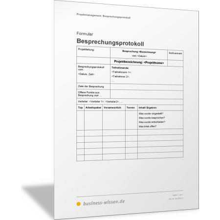 Besprechungsprotokoll für Projekt-Meetings